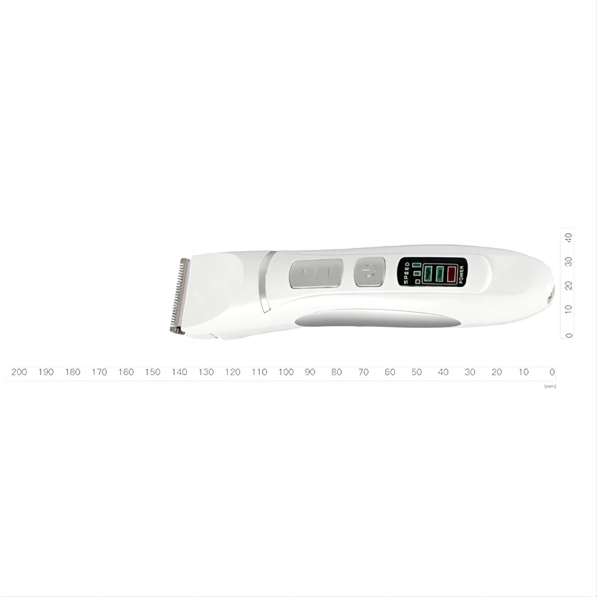 De kleine elektrische huisdiertrimmer heeft een combinatie van roestvrij staal en keramiek.